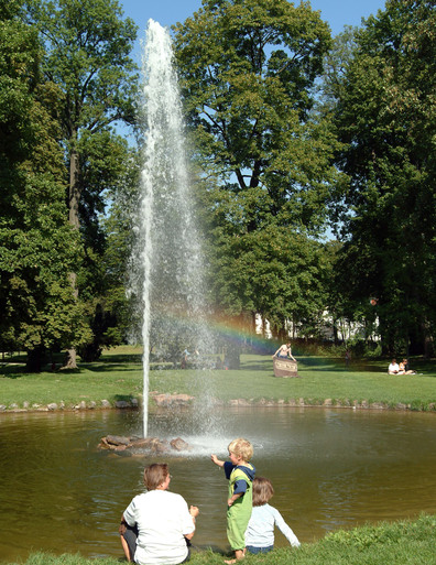 Eine Große Fontäne war schon im 18. Jahrhundert Teil des Biebricher Schlossparks. Der V V B machte es dank des besonderen Engagements von Klaus E. Zengerle möglich, dass das Wasser wieder bis zu 13 Meter hoch sprudelt, nachdem die Fontäne in den 1950er Jahren stillgelegt werden musste.